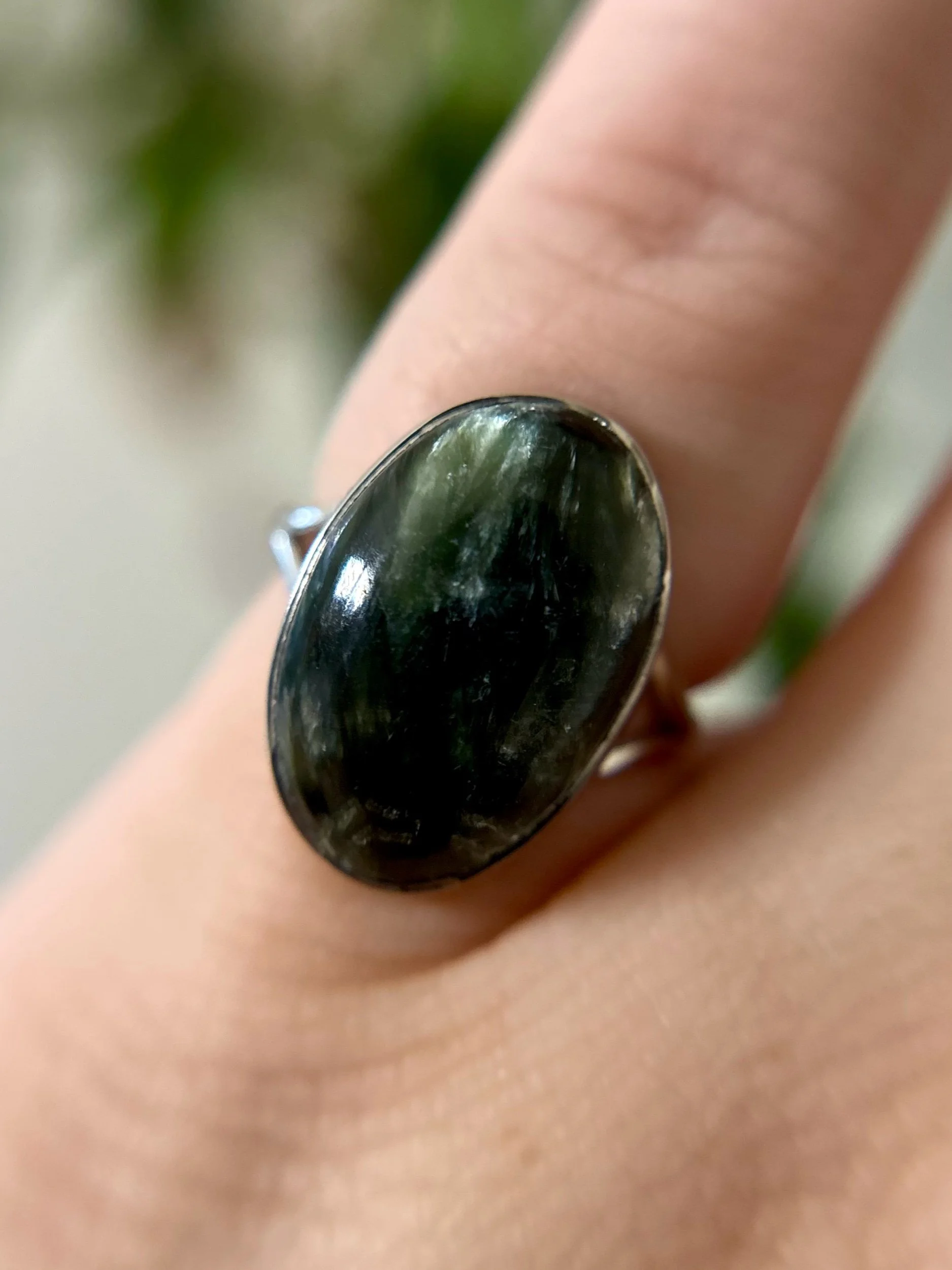 Shop › Green Seam Agate Ring - Size 5.25 Image 1 of 3 Image 2 of 3 Image 3 of 3 Green Seam Agate Ring - Size 5.25 $48.00 Sterling silver. Stamped 925.Genuine Green Seam Agate gemstone.Size 5.25. Get notified by email when this product is in stock. Sign up to receive news and updates. Add To Cart Added! Sterling silver. Stamped 925.Genuine Green Seam Agate gemstone.Size 5.25. Reviews Reviewer Name Review Date Star Rating Description Posted on Etsy Product Show More You Might Also Like Seraphinite Ring - Size 5 $54.00 Solar Halo Ring $20.00 Hollow Starlight Ring $20.00 Fairy Garden Ring $20.00 Sold Out Lunar Cycle Ring $20.00
