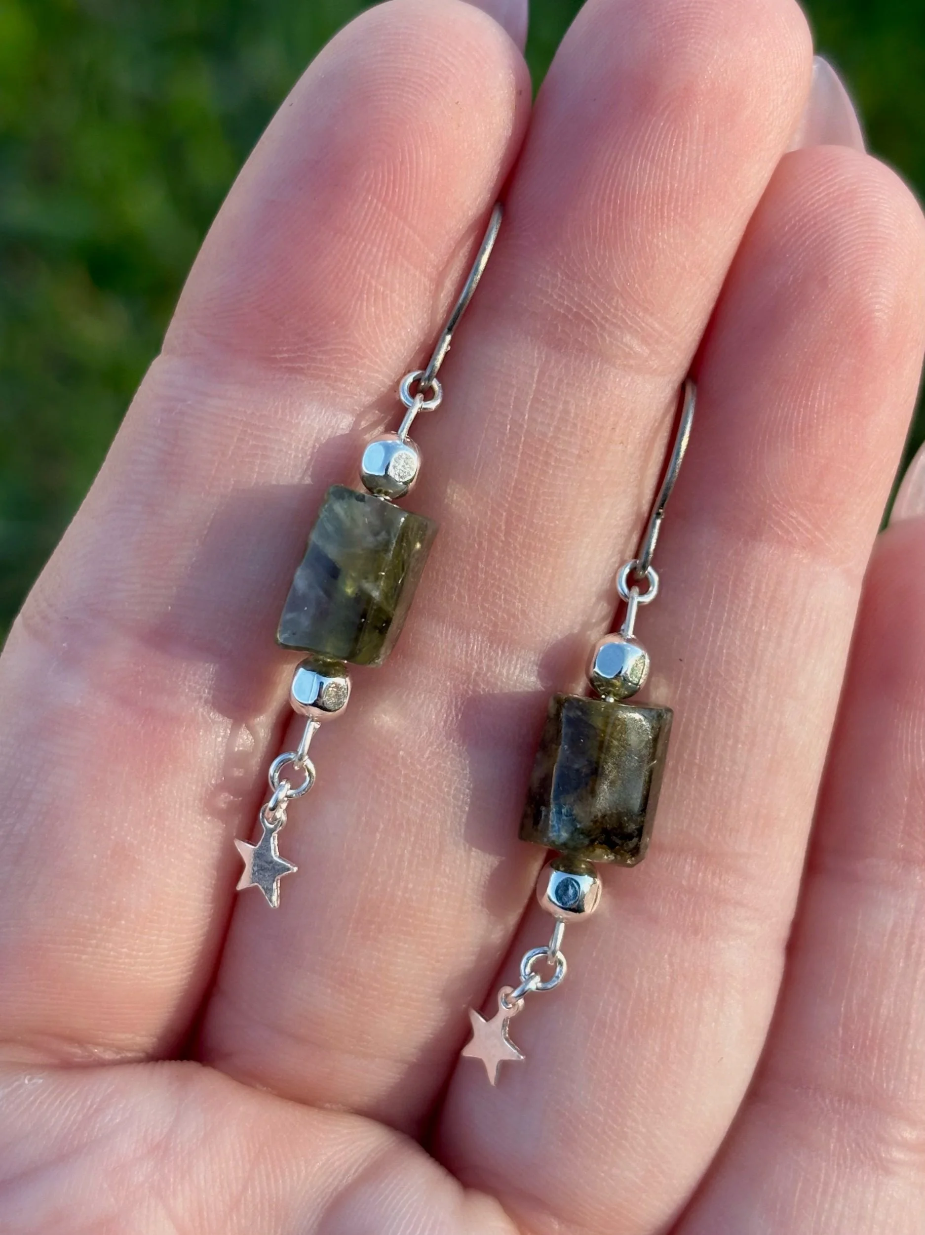 Sterling silver components with a hypoallergenic titanium ear wire.